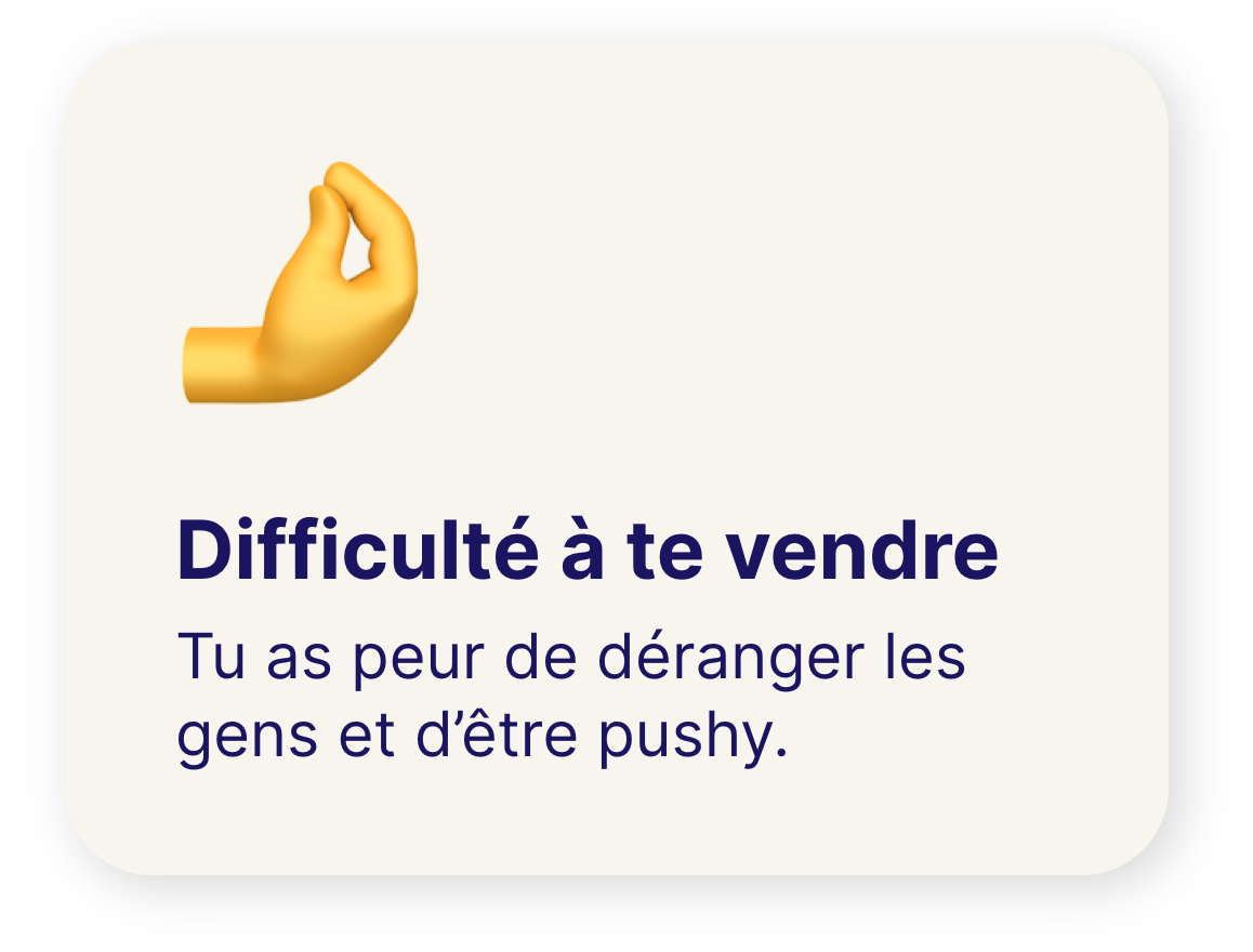 Je mélange stratégie concrète, coaching humain et dynamique de communauté. Mon but : que tu prennes confiance, que tu arrêtes de subir ton activité, et que tu trouves tes clients sans avoir à te transformer en vendeur d'aspirateur ou en shark.