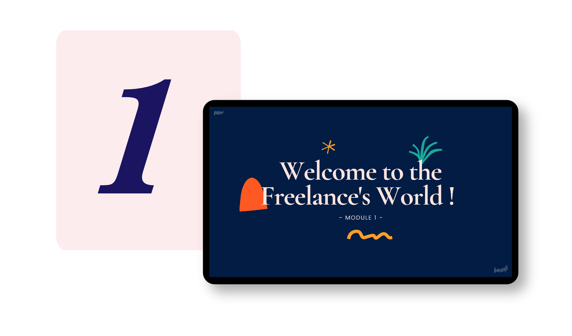 Les 5 thématiques essentielles du freelancing : offre, prospection, prix, droits d'auteurs, process. Des vidéos courtes (4 min en moyenne), faciles à suivre et directement actionnables avec des exemples concrets