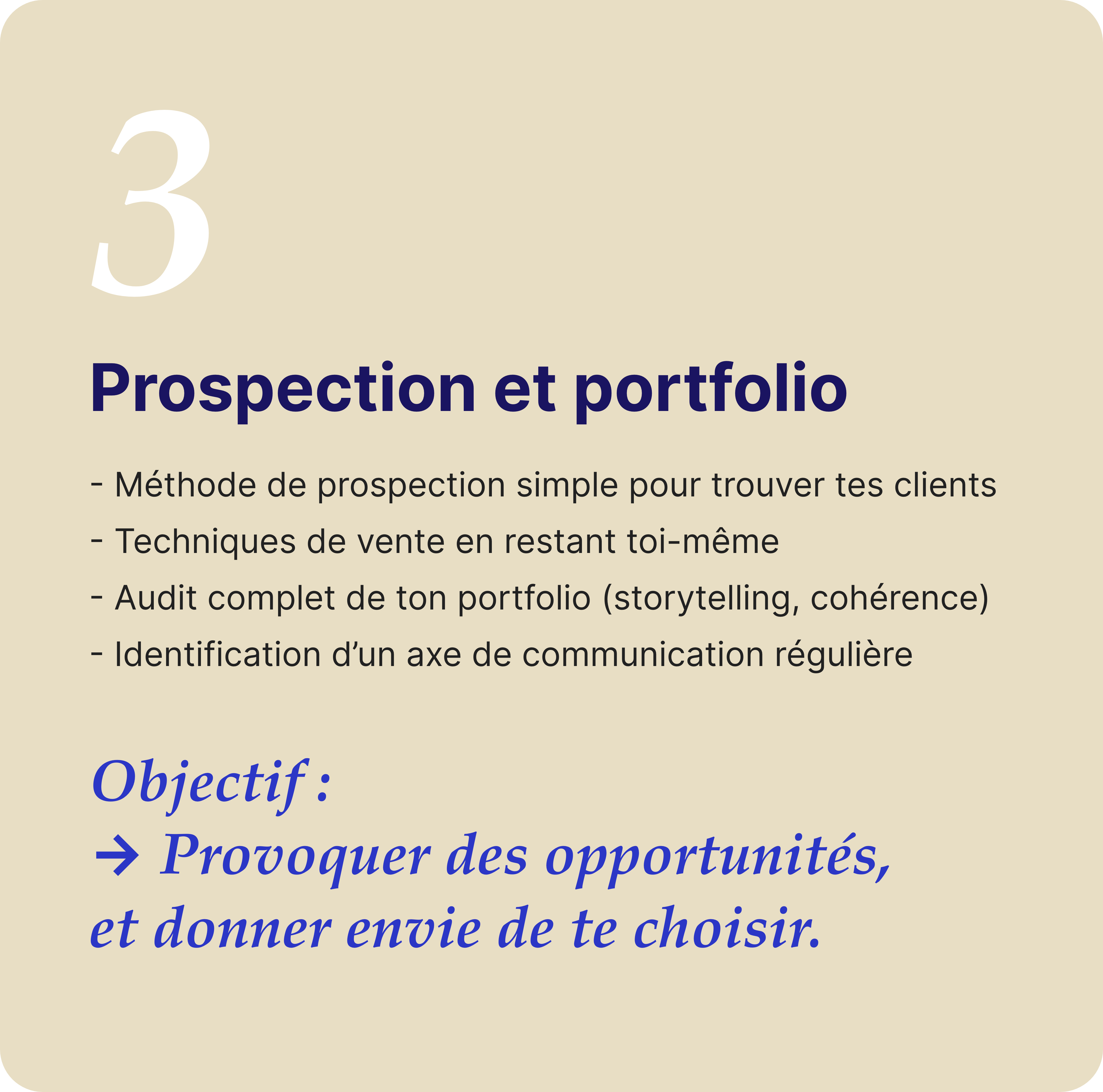 Des ateliers expert pour te perfectionner sur 3 piliers commerciaux : prospecter efficacement, comprendre les codes du secteur culturel et créer une propale commerciale qui vend.